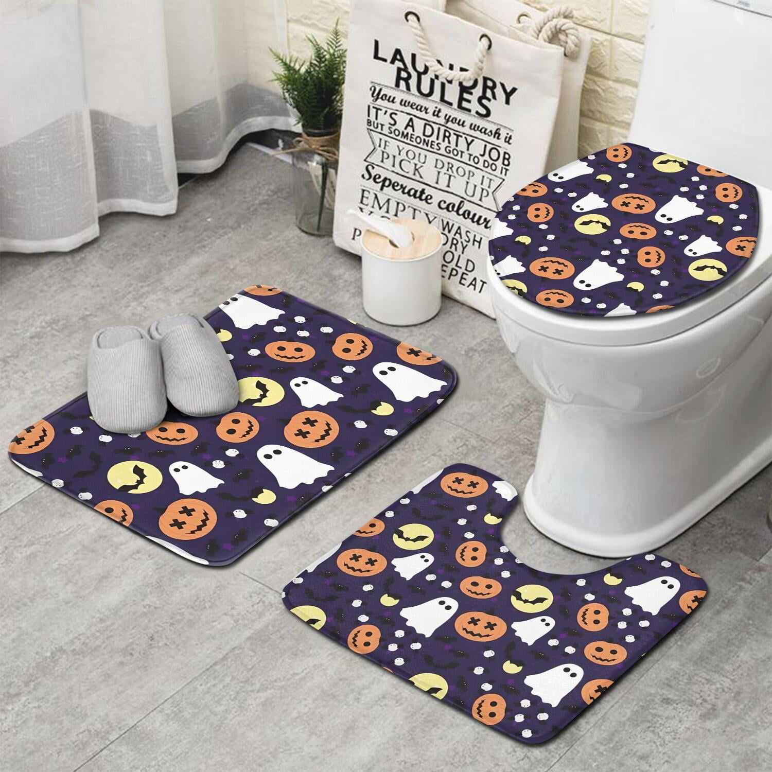Halloween Ghost & Pumpkin Pattern Bathroom Rugs Sets 3 Piece,Toilet ...