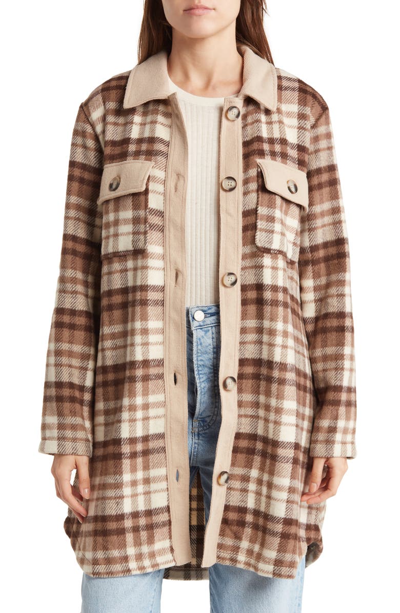 MELLODAY Box Plaid Woven Shacket | Nordstromrack