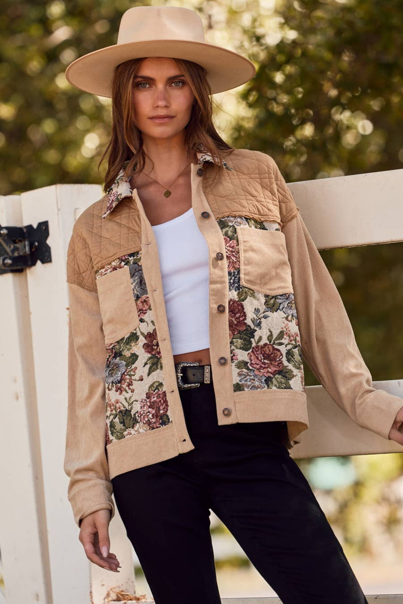 Vintage Rose Patch Shacket: Taupe Multi – Haute as Ice