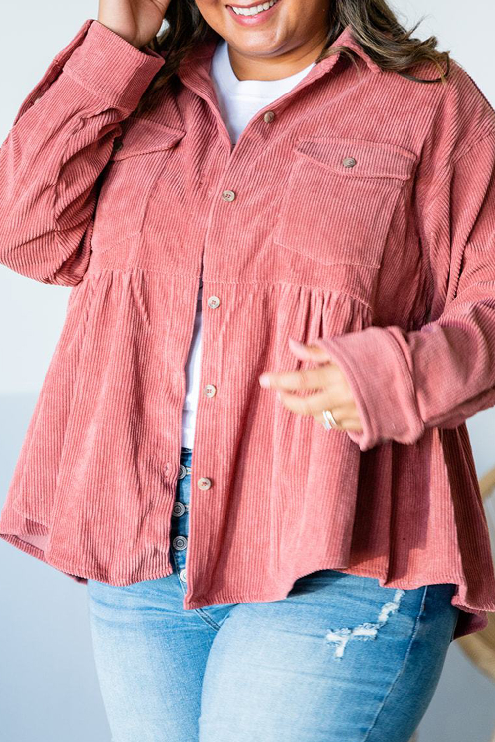 Rose Corduroy Button Oversized Shacket | Clothes design, Plus fashion ...