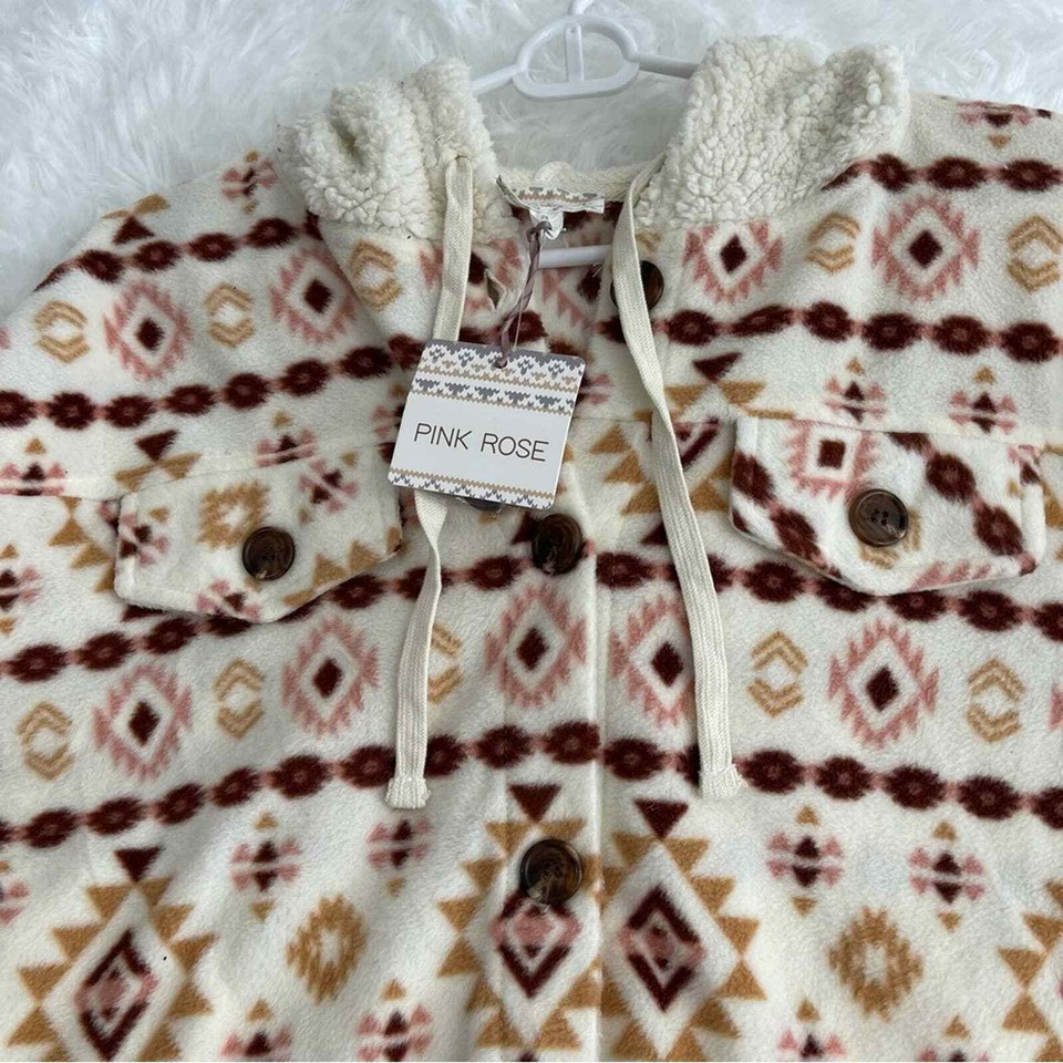 Pink Rose Womens Cropped Shacket Size Small Aztec print pockets | eBay