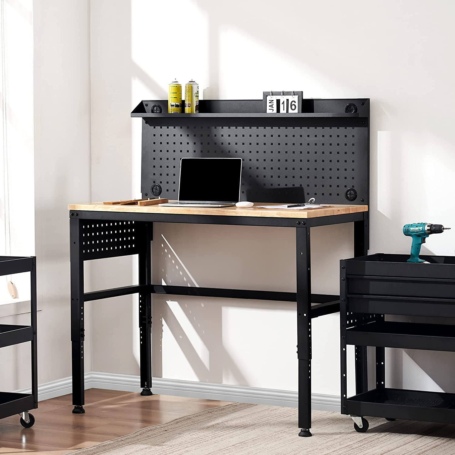 Adjustable Workbench with Solid Acacia Wood Top, Heavy Duty Steel ...