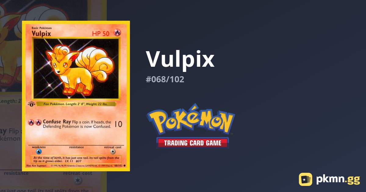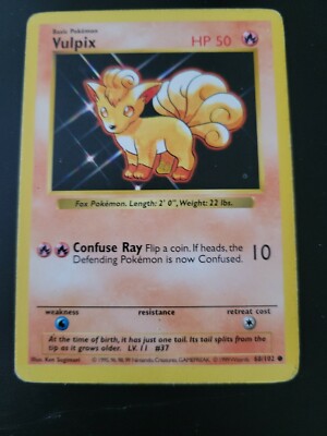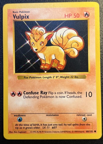 Shadowless Vulpix 68/102 Pokemon TCG Base Set 1999 - NM | eBay