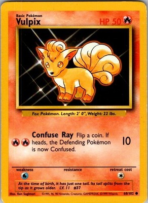 Pokémon Card Vulpix Base Set 68/102 SHADOWLESS LP-NM | eBay