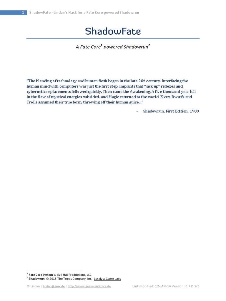 Shadowfate - Lindan'S Hack For A Fate Core Powered Shadowrun | PDF ...