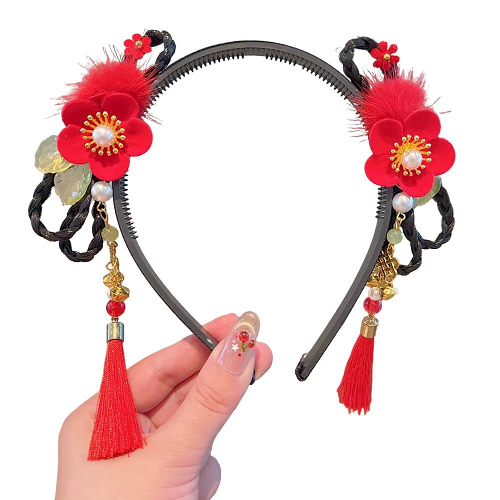 AGIUFGS Plastic Headband with Plush Flowers and Pearls, Festive Holiday ...