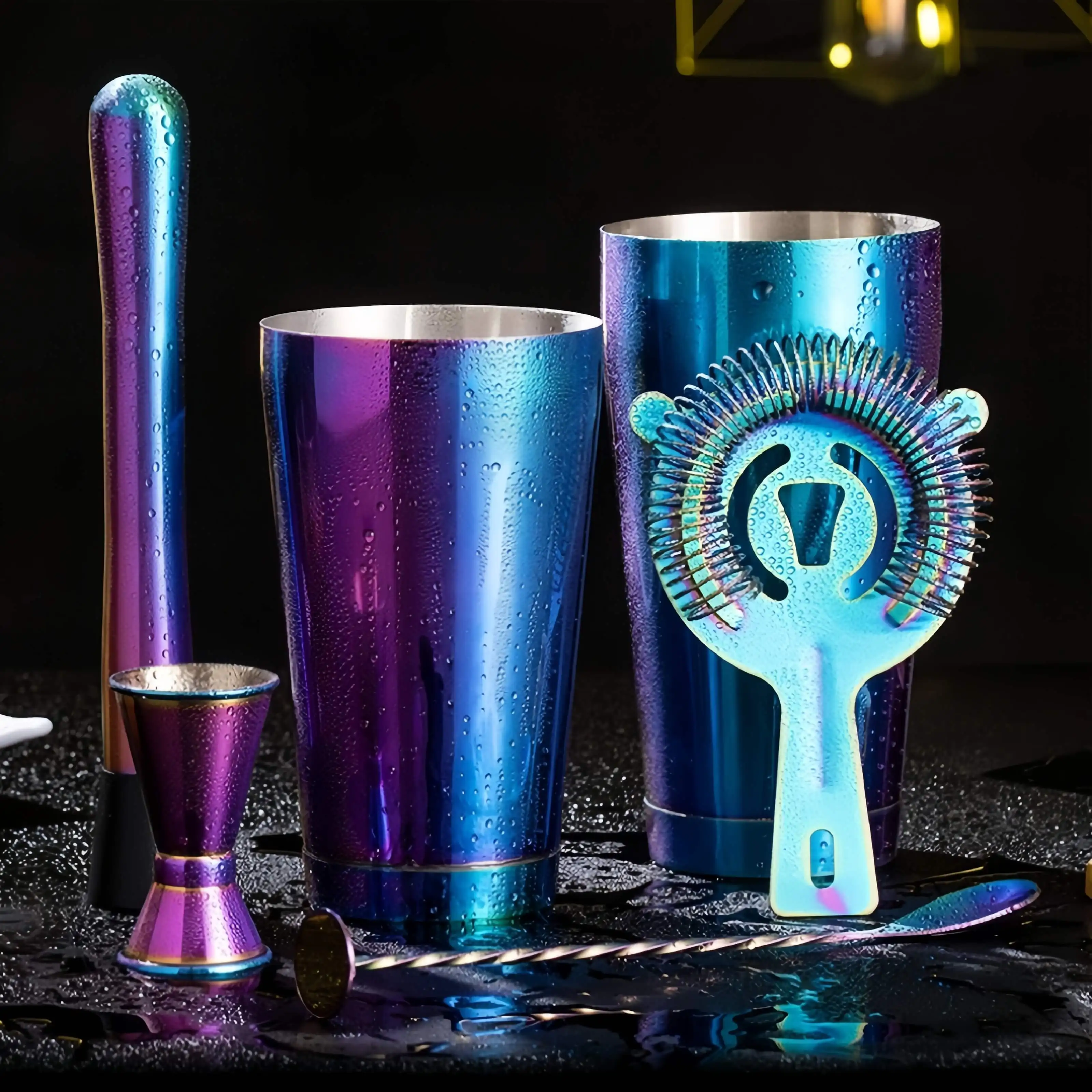 Classic Stainless Steel Rainbow Color Plating Cocktail Shaker Set ...