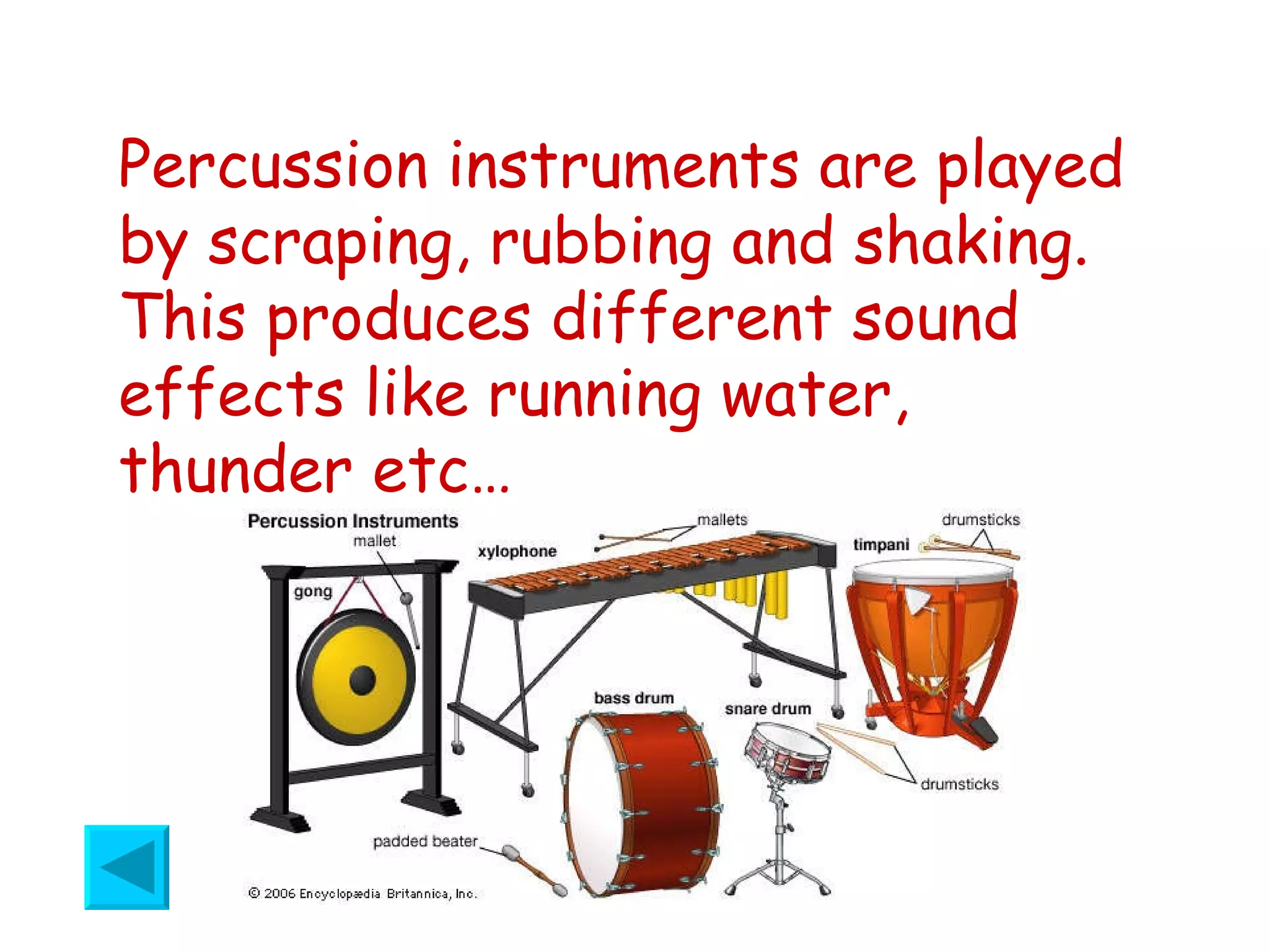 BEST!! PERCUSSION instruments are played by either striking (with hands ...