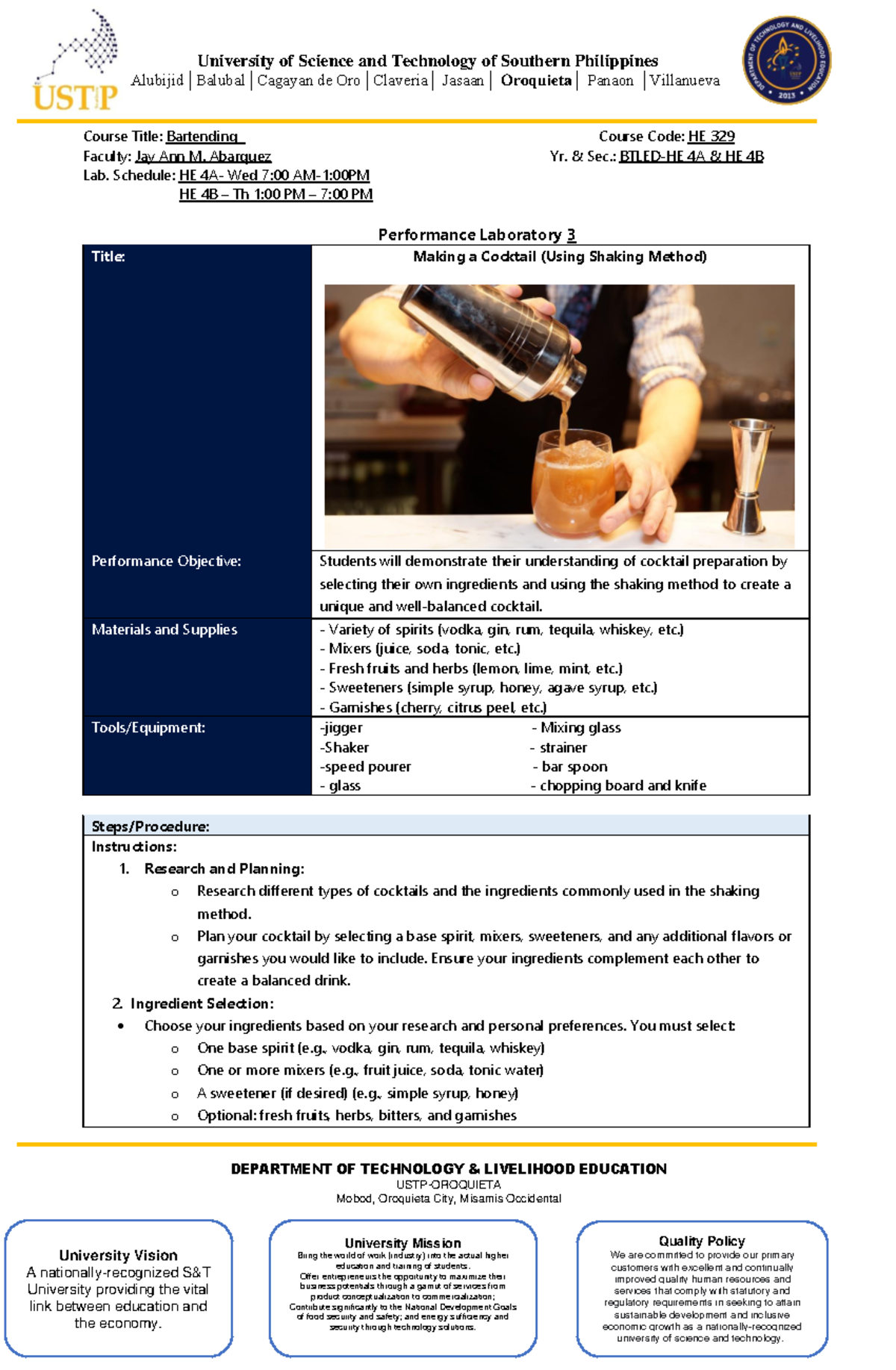 HE329 Laboratory 3 - Cocktail Preparation Using Shaking Method - Studocu