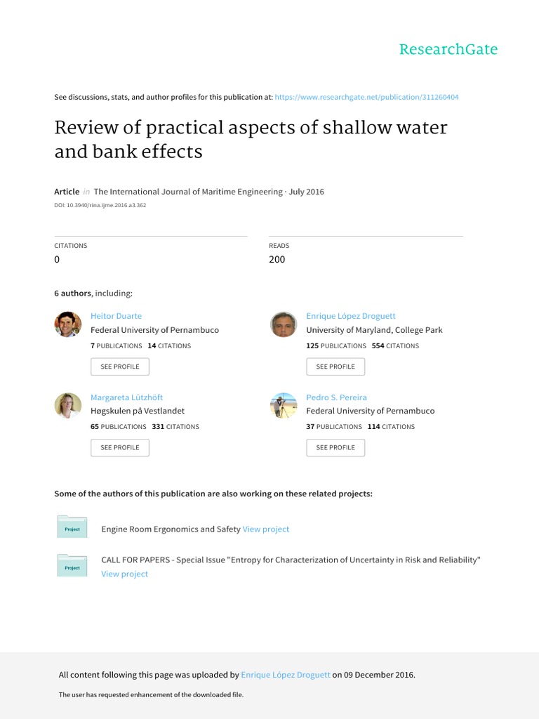 Review of Practical Aspects of Shallow Water Effects | PDF | Ships | Rudder