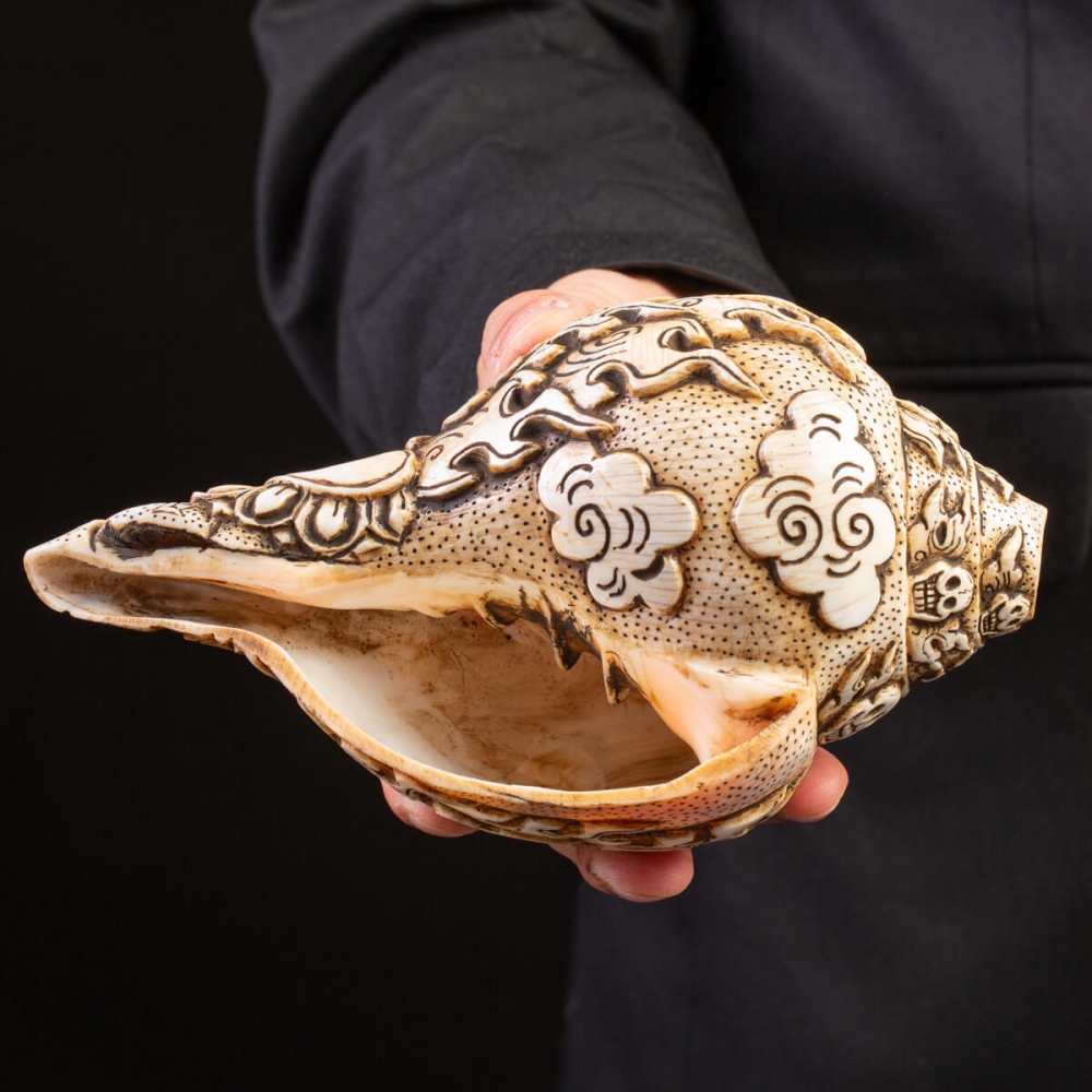 Sacred Tibetan Conches: Shankha. Sea shell - Hand-Carved Tibetan Conch ...
