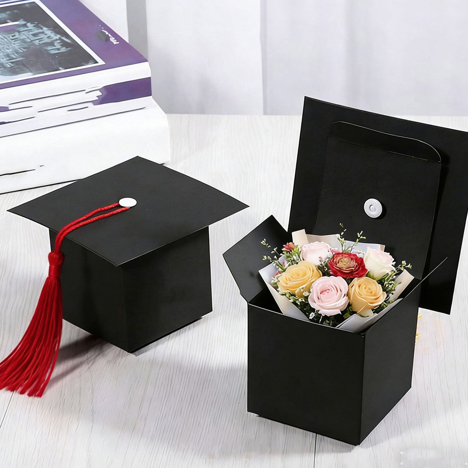 Graduation Cap Shaped Gift Boxes With Tassels, 2 Pieces Candy And Snack ...