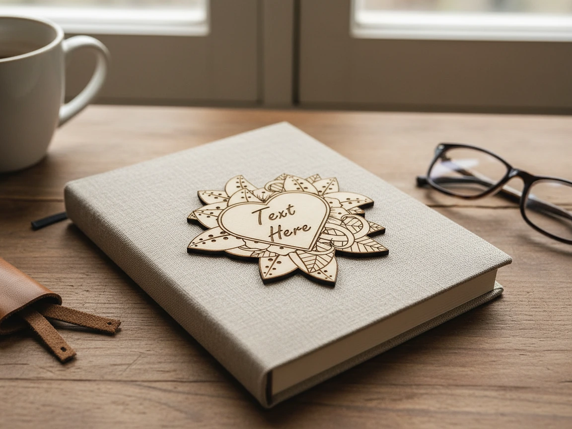 Laser engraved wooden brooch in heart shape with floral mandala design ...
