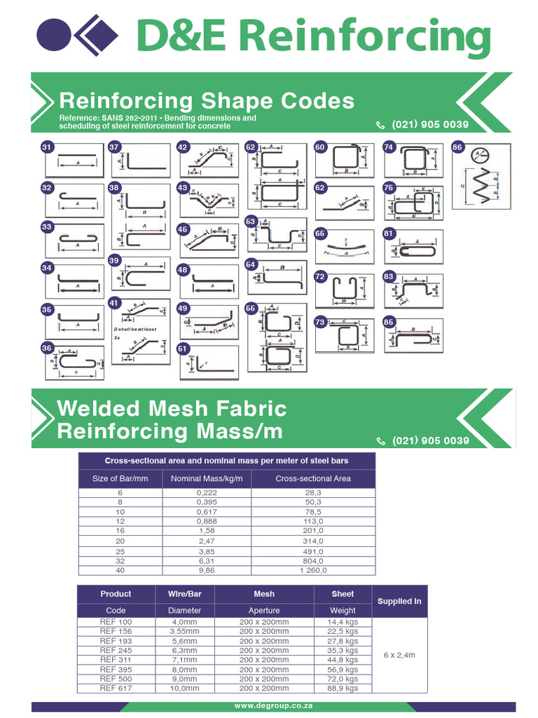 Basic Bar Bending Schedule Rebar Reinforcement Shape Codes: SANS 282 ...