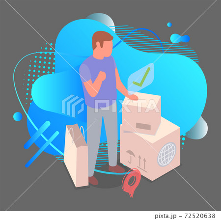 Man stands on background of parcels, blue...のイラスト素材 [72520638] - PIXTA