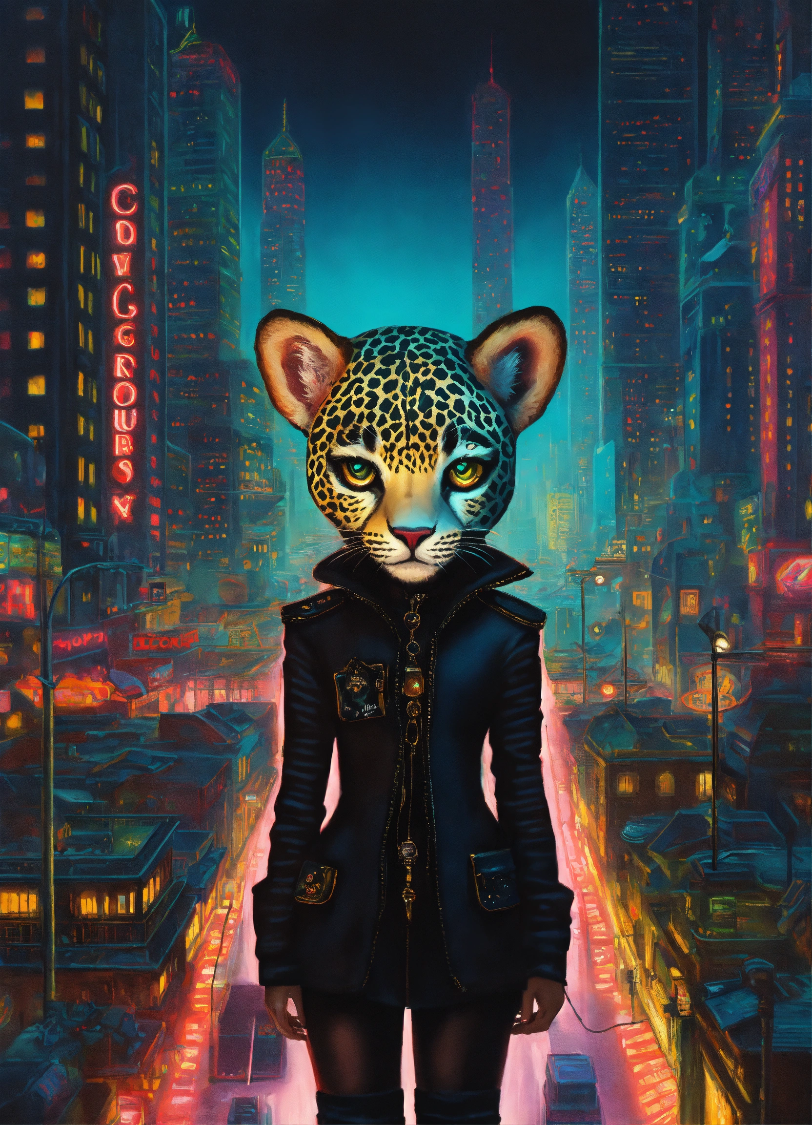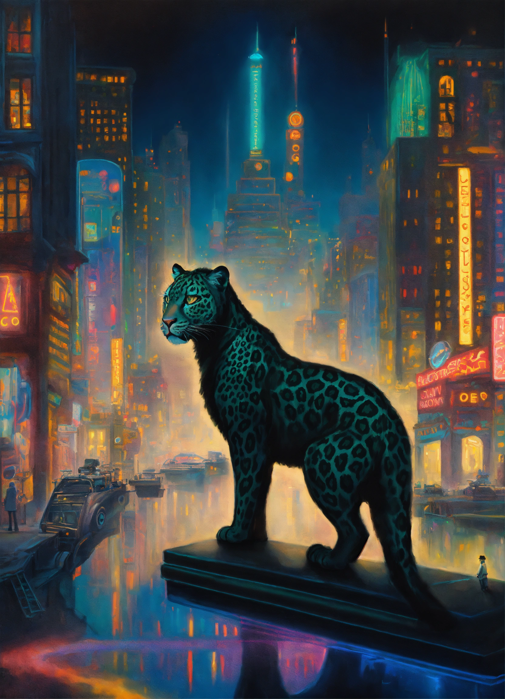 Lexica - Black colors, a shapeshifter, leopard, futuristic cityscape ...