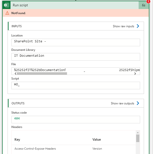 sharepoint - Excel Script and Flow problem - Script not found. It may ...