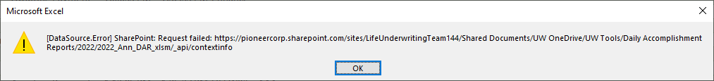 Solved: getting error when getting excel from sharepoint - Microsoft ...