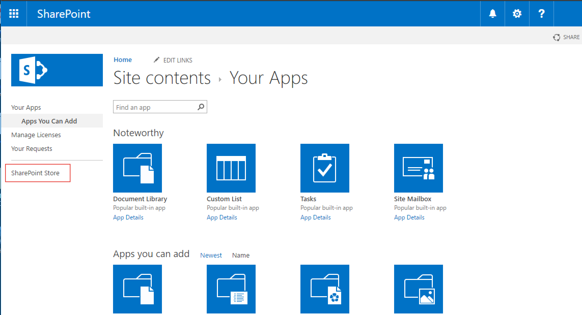 Request and install apps from the SharePoint Store