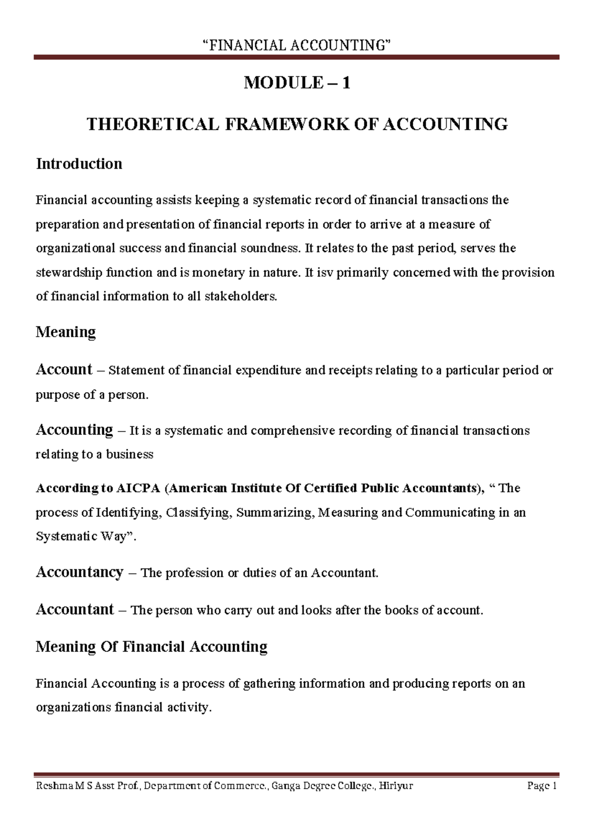 Module 1 - financial accounting - Bcom - Nep - Reshma M S Asst Prof ...