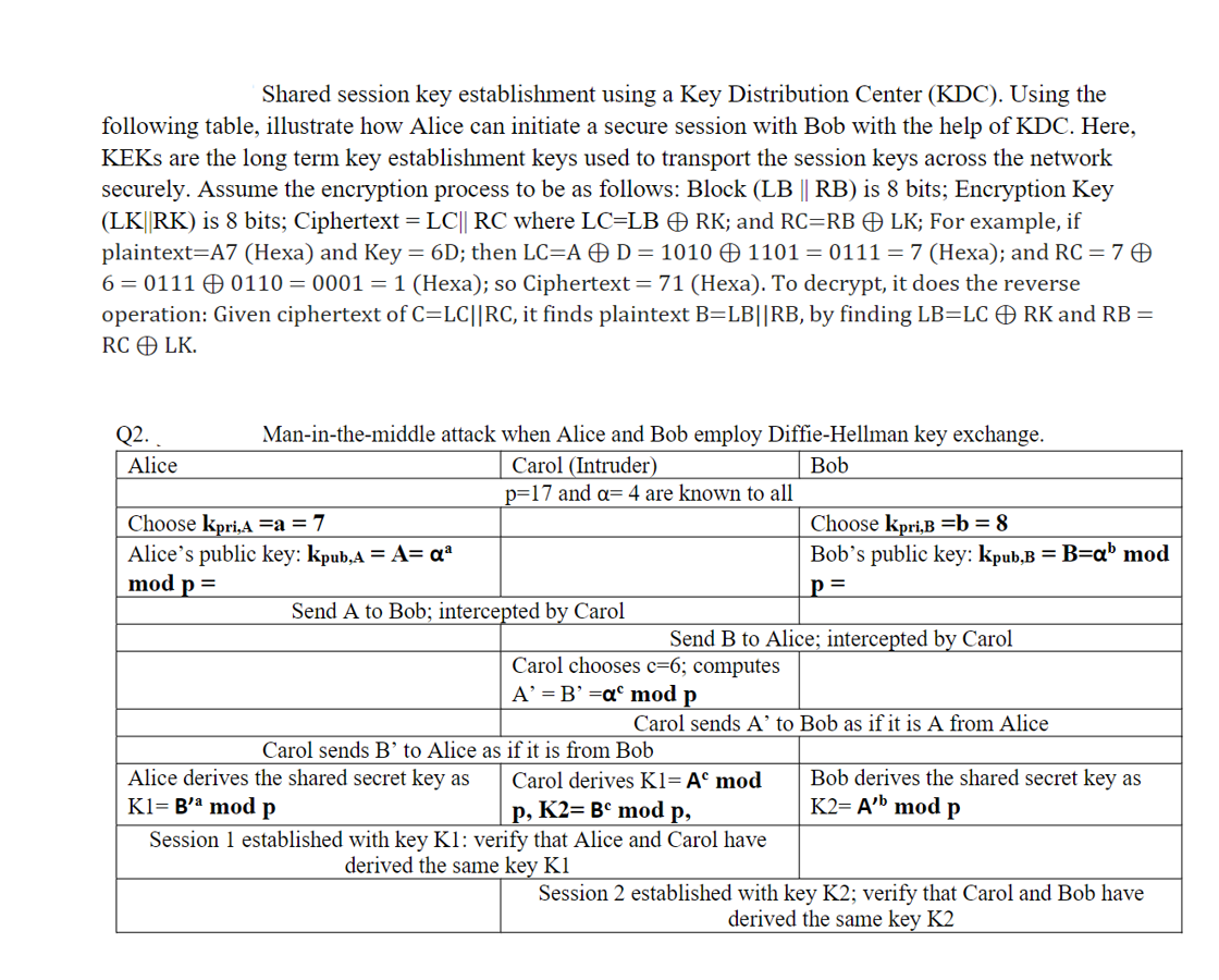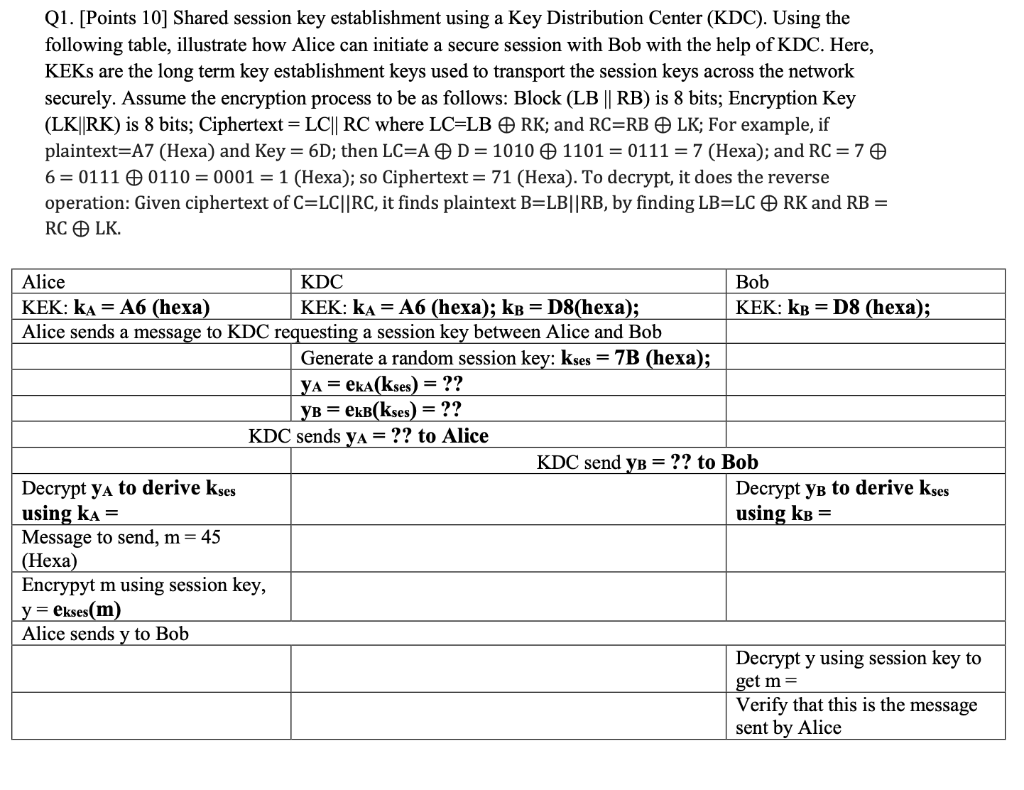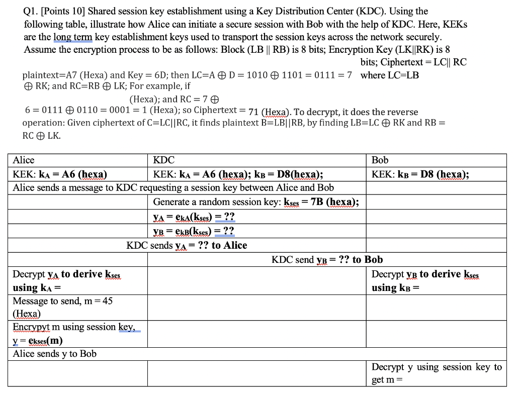 Solved QI. [Points 10] Shared session key establishment | Chegg.com