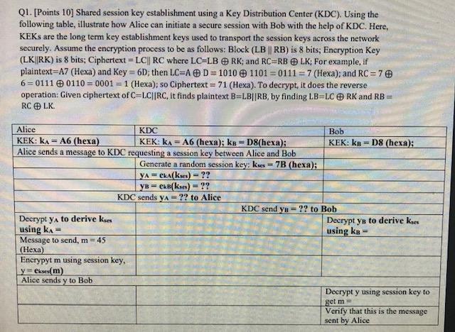 Q1. [Points 10] Shared session key establishment | Chegg.com