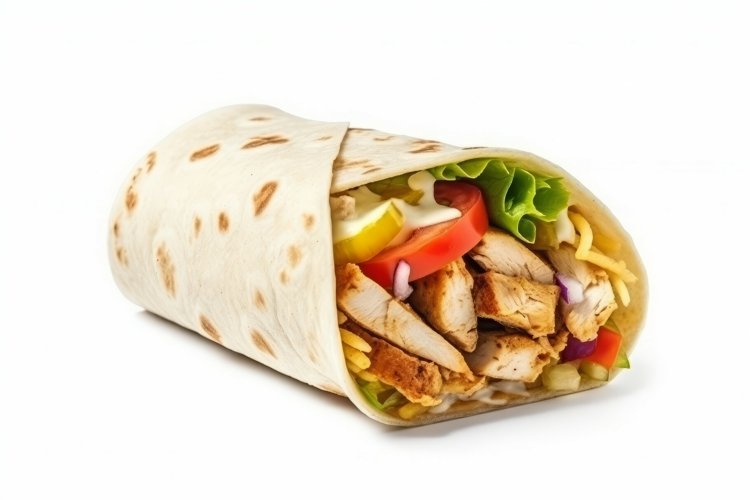 AI generated a chicken shawarma wrap with french fries and tomatoes ...