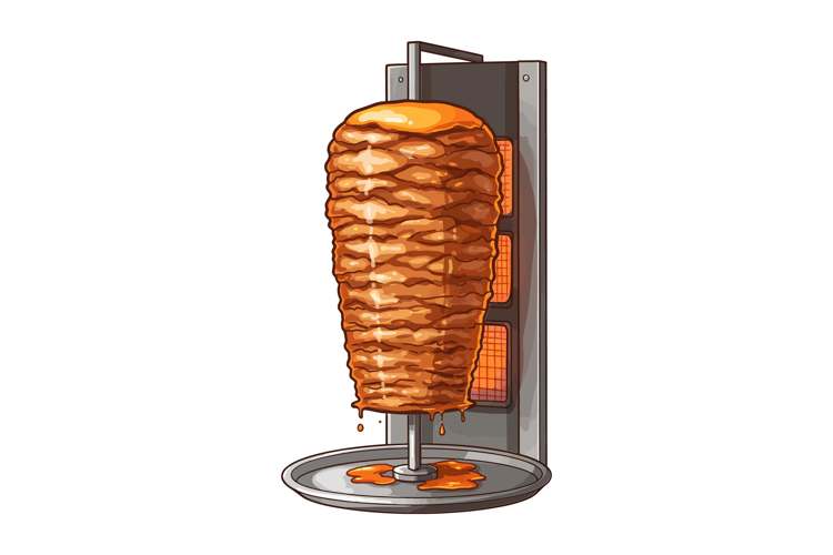 Detailed illustration of a vertical shawarma stack with gold