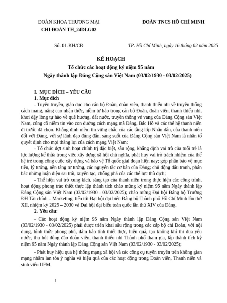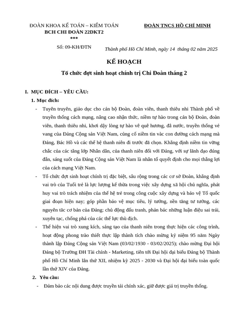 KH Tổ Chức SHCT Chi Đoàn 22DKT2 - Tháng 2 Năm 2025 | PDF