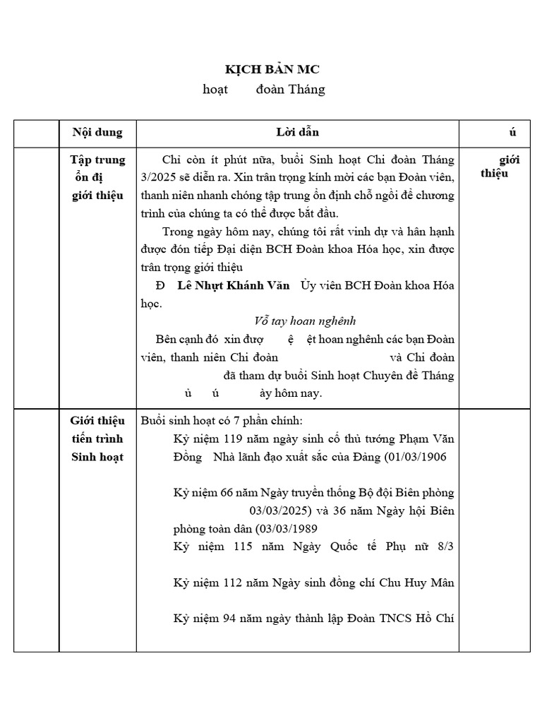 KỊCH BẢN SHCT T03.2025 | PDF
