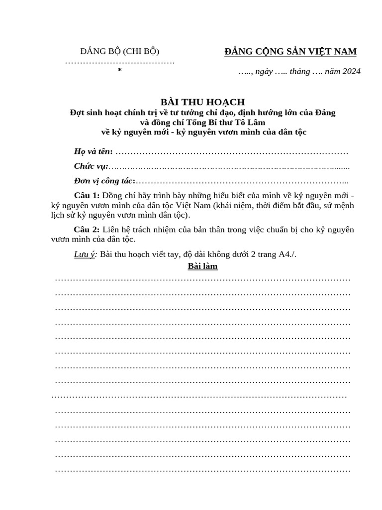 Mẫu Bài Thu Hoạch SHCT 16.12 | PDF