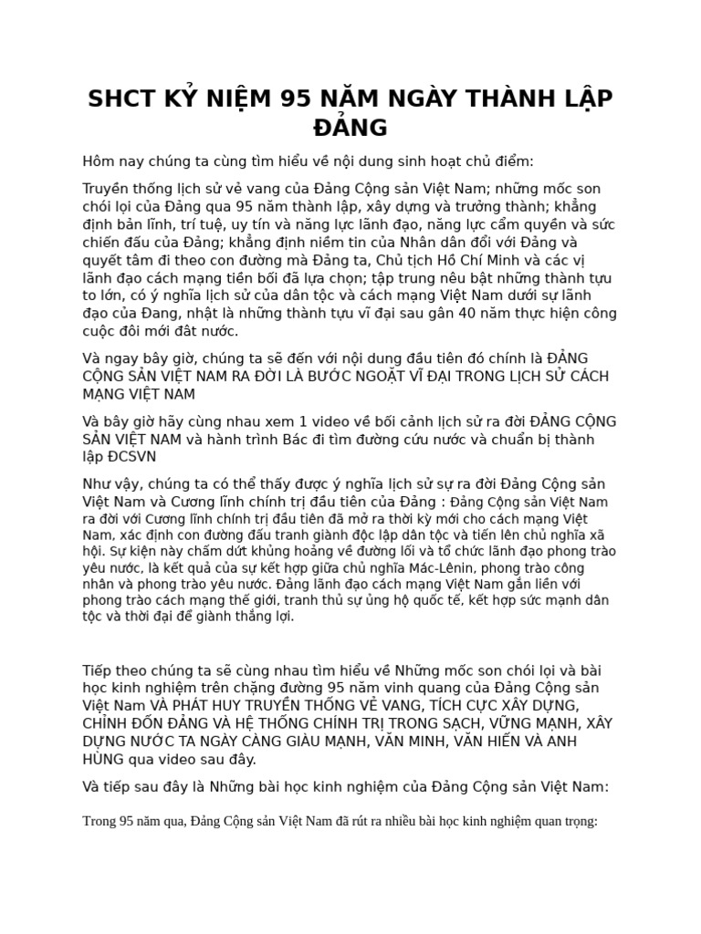 Shct Kỷ Niệm 95 Năm Ngày Thành Lập Đảng | PDF