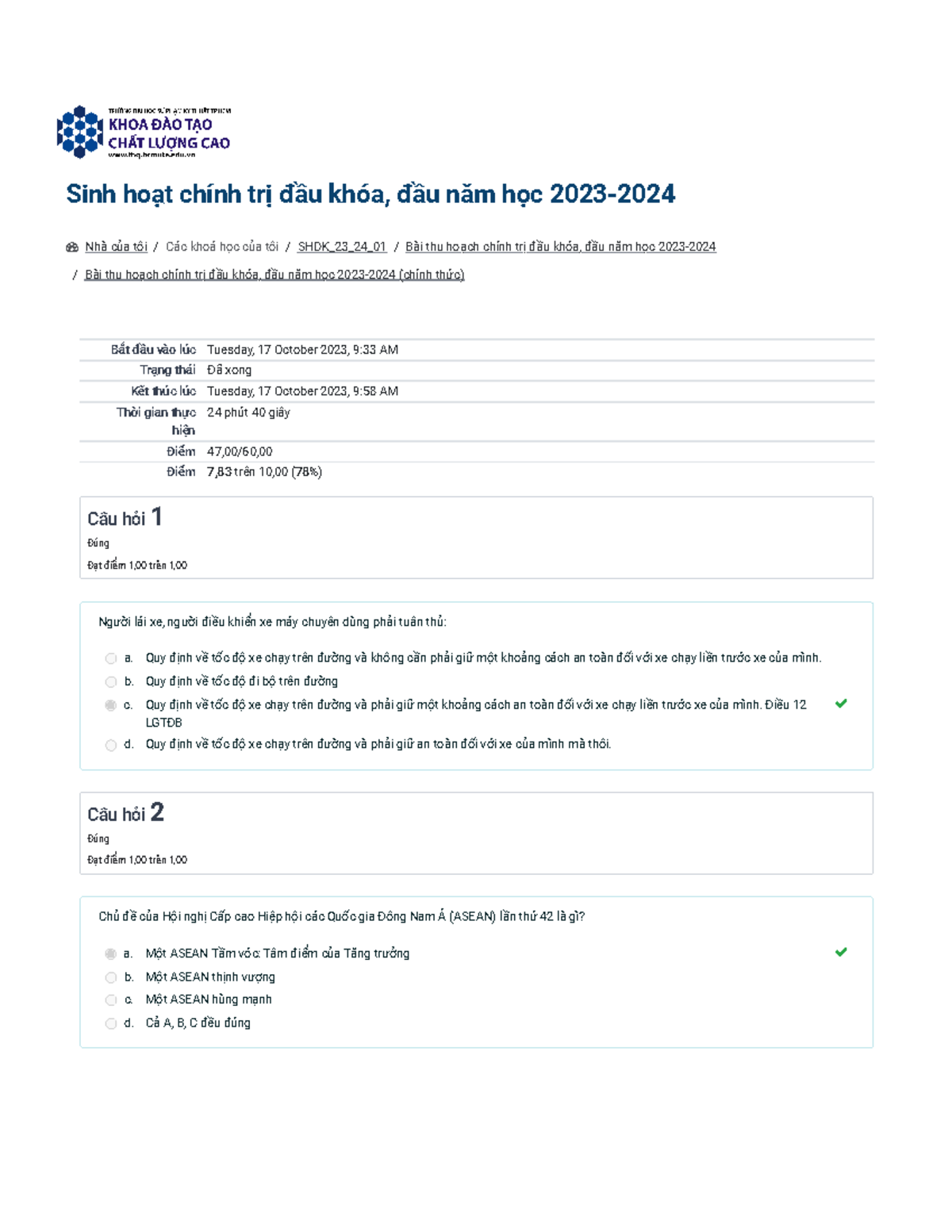4-SHCT - Bài Thu Hoạch Chính Trị Đầu Khóa Năm Học 2023-2024 - Studocu
