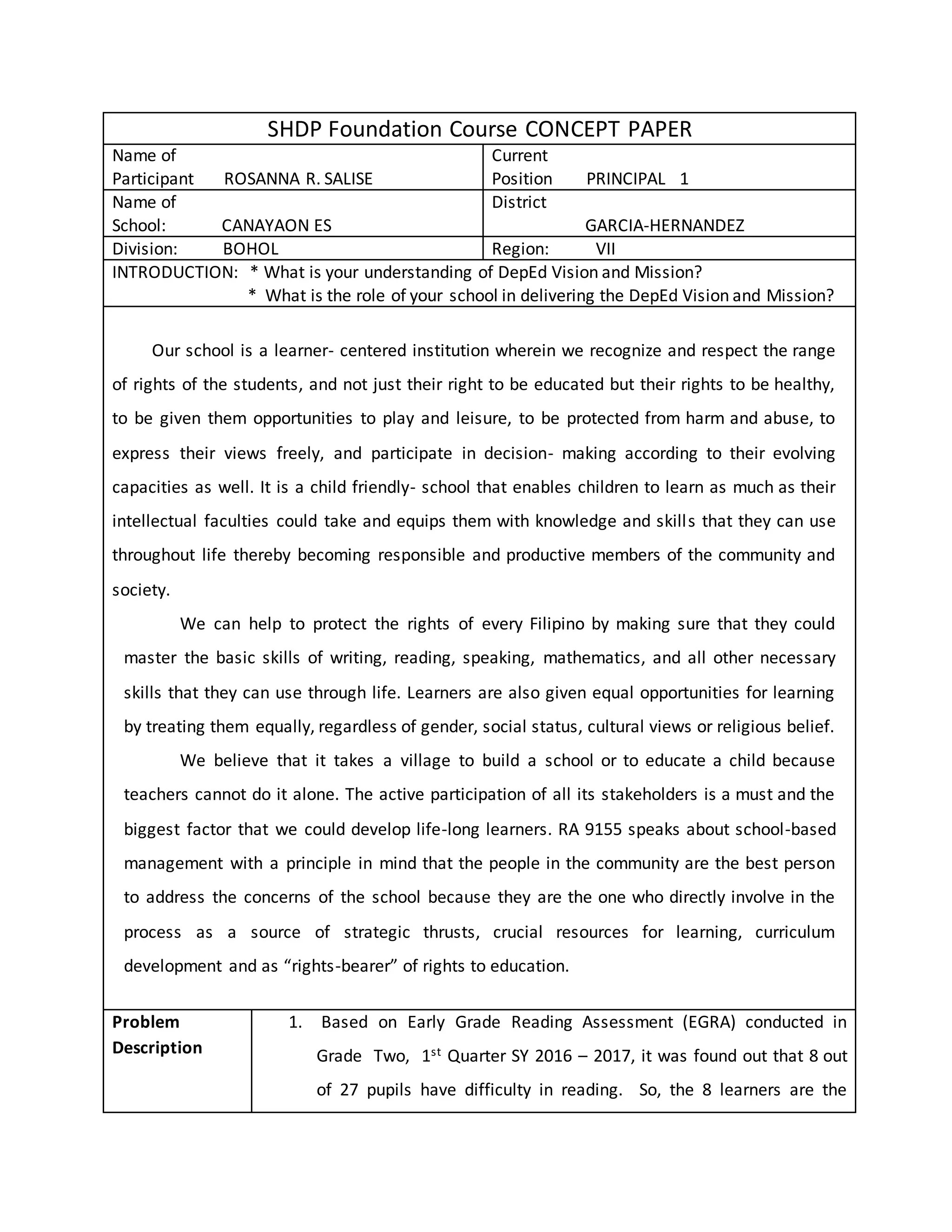 Shdp foundation course concept paper | DOCX