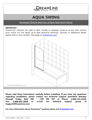 DreamLine SHDR-3734580-01 Bathtub Door Installation Manual | Manualzz