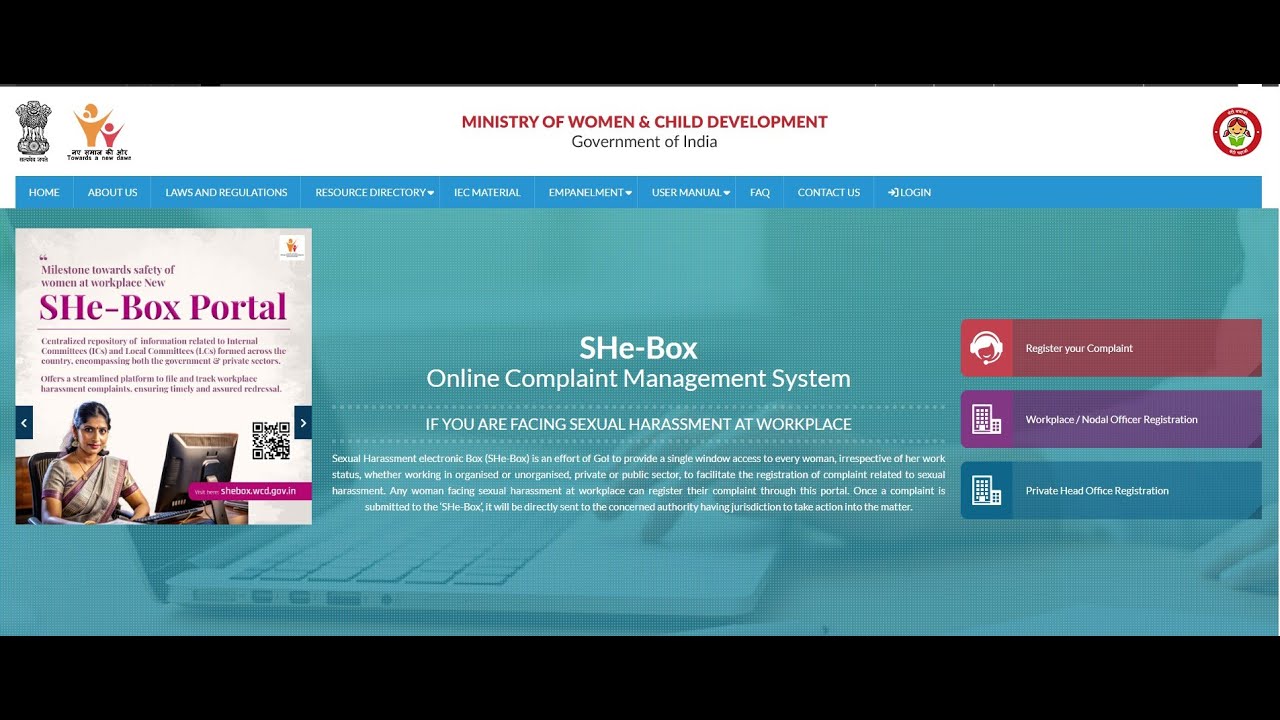 The SHe-Box Portal by the Ministry of Women and Child Development, Govt ...