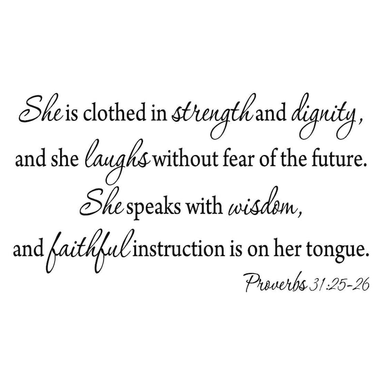 She is Clothed in Strength and Dignity, Proverbs 31 25-26 Vinyl Bible ...
