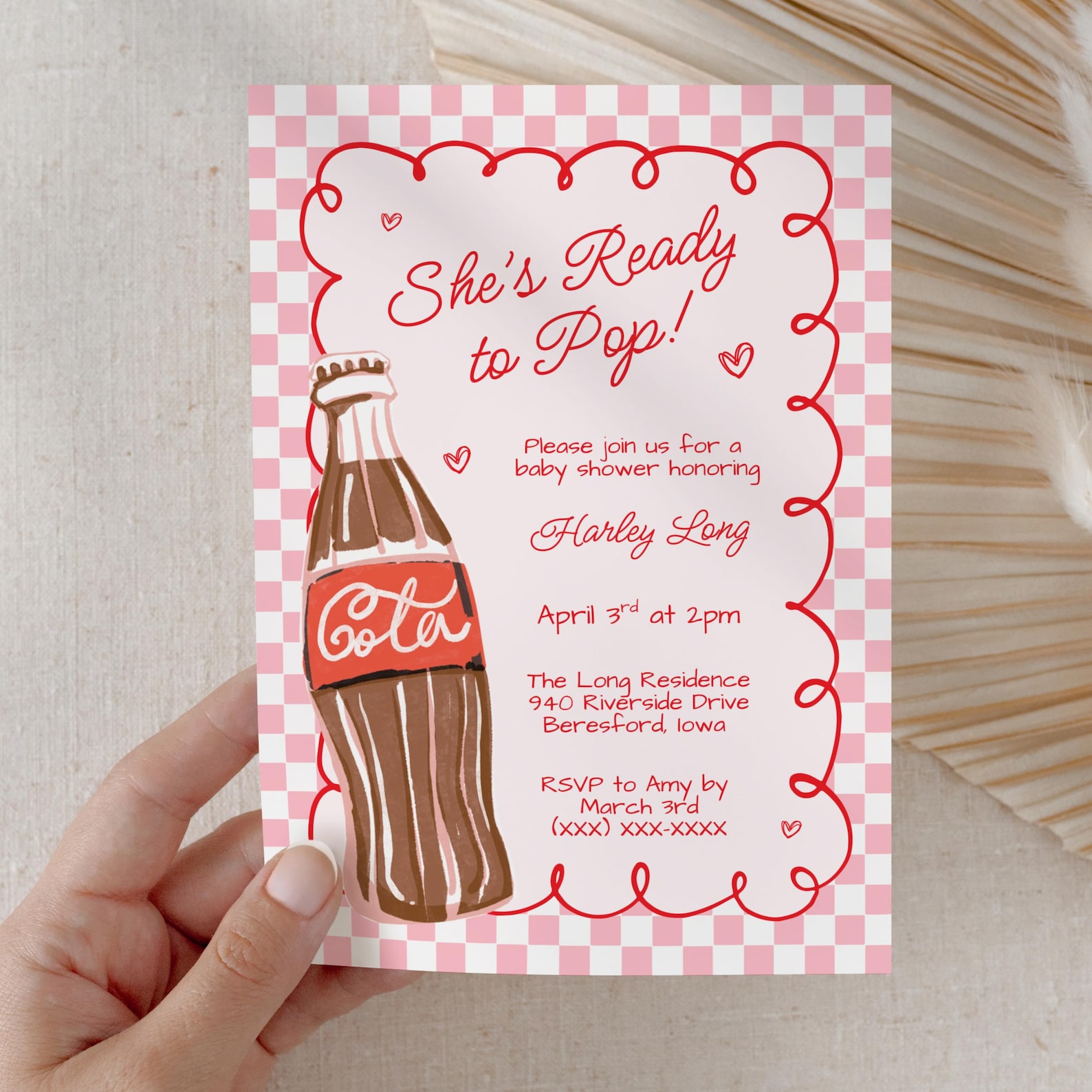 She's Ready to Pop Baby Shower Invite, Soda Pop Baby Shower Theme ...