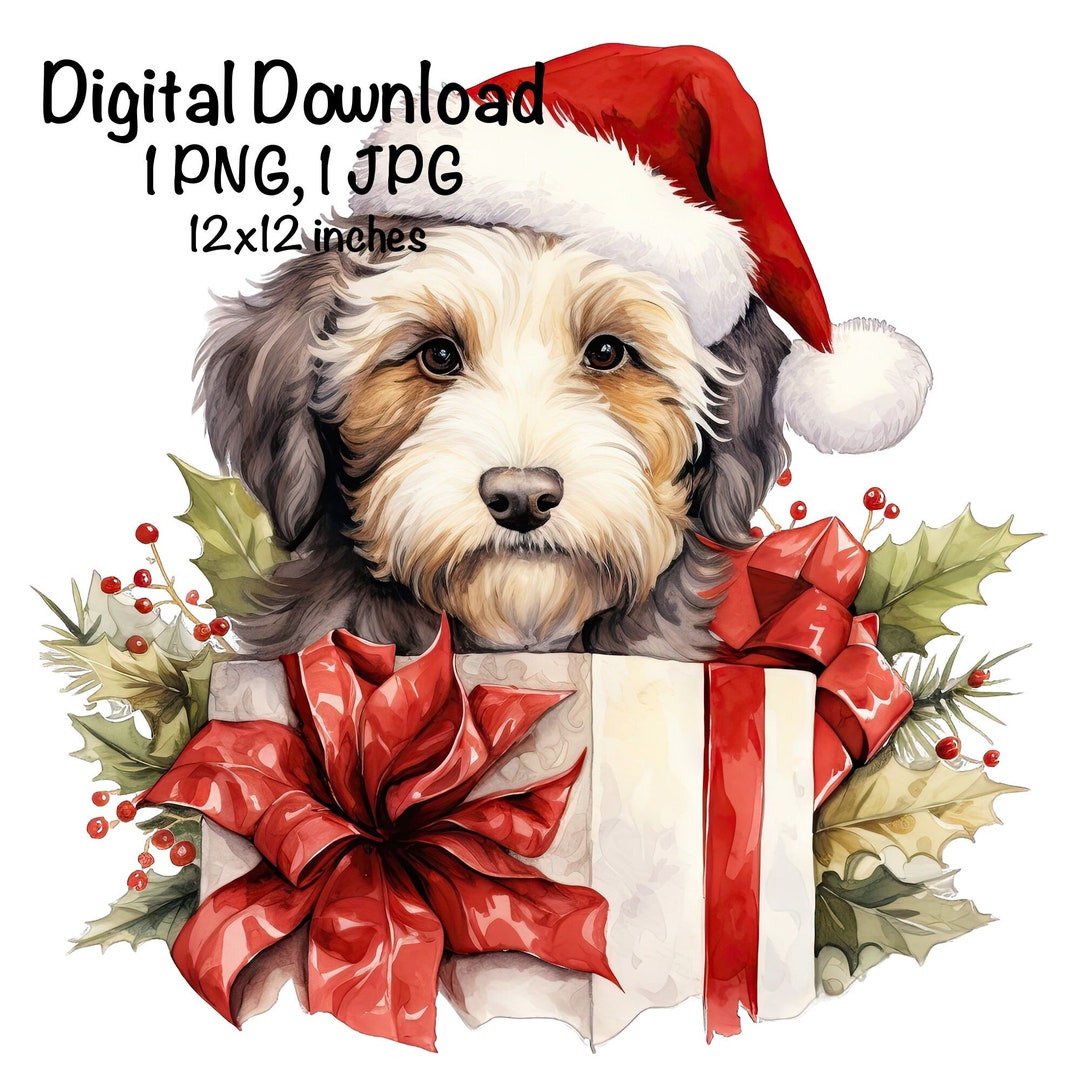 Christmas Sheepadoodle Clipart, Doodle Dog Christmas Holiday Gifts PNG ...