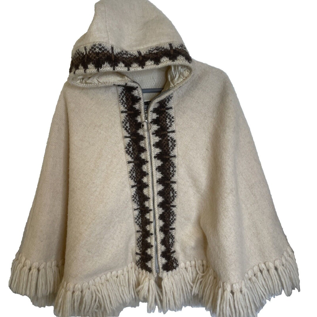 Icelandic Art Wool Womens VTG Sheepa Sz L Zip up Cape With Hood Cream ...