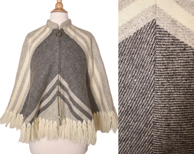Vintage 60s Cape Sheepa Icelandic Art Natural Beige Gray Wool Chevron ...