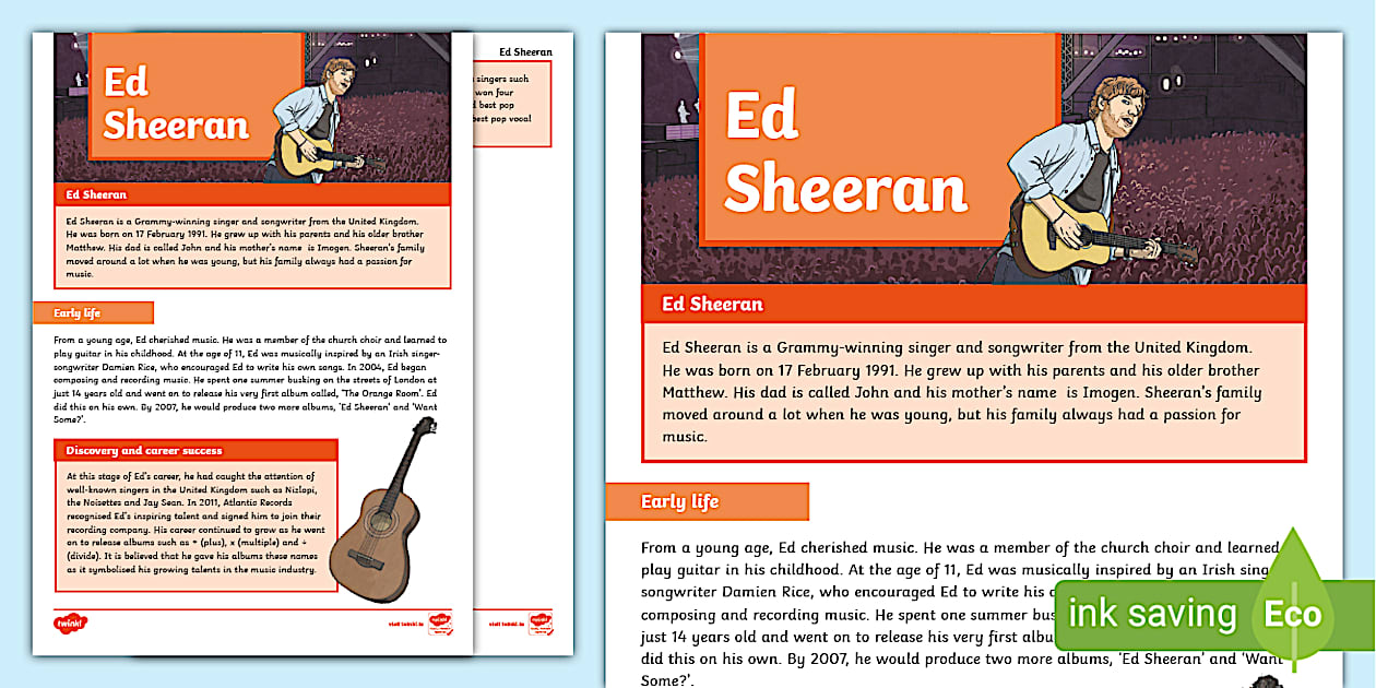 Reading Comprehension Homework Week 4 Ed Sheeran 3rd/4th