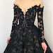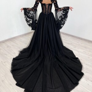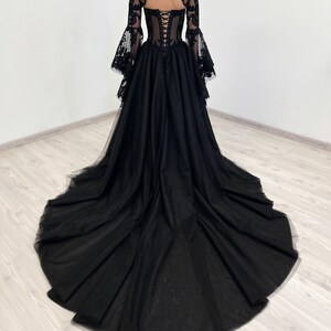 Black Beaded Sheer Drop Waist Corset Wedding Dress, Alternative Bride ...