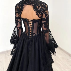 Black Gothic Sheer Basque Waist Corset Tulle Wedding Dress ...