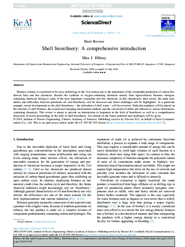 Shell Biorefinery: Dream or Reality? - Chen - 2016 - Chemistry – A ...