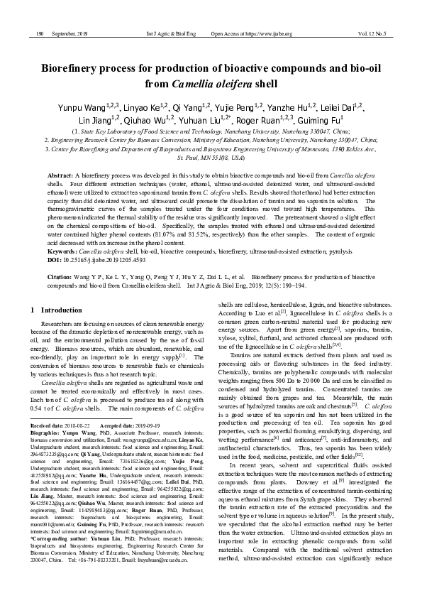 (PDF) Biorefinery process for production of bioactive compounds and bio ...