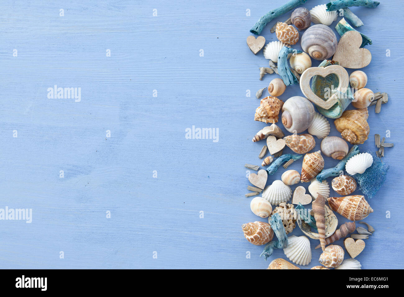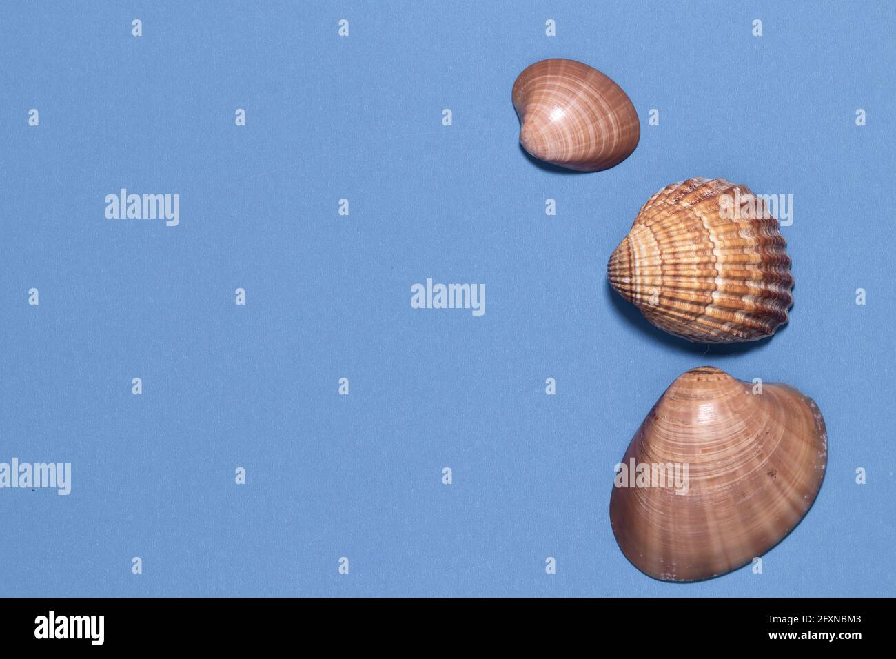 Sea shells on blue background. shell texure Stock Photo - Alamy