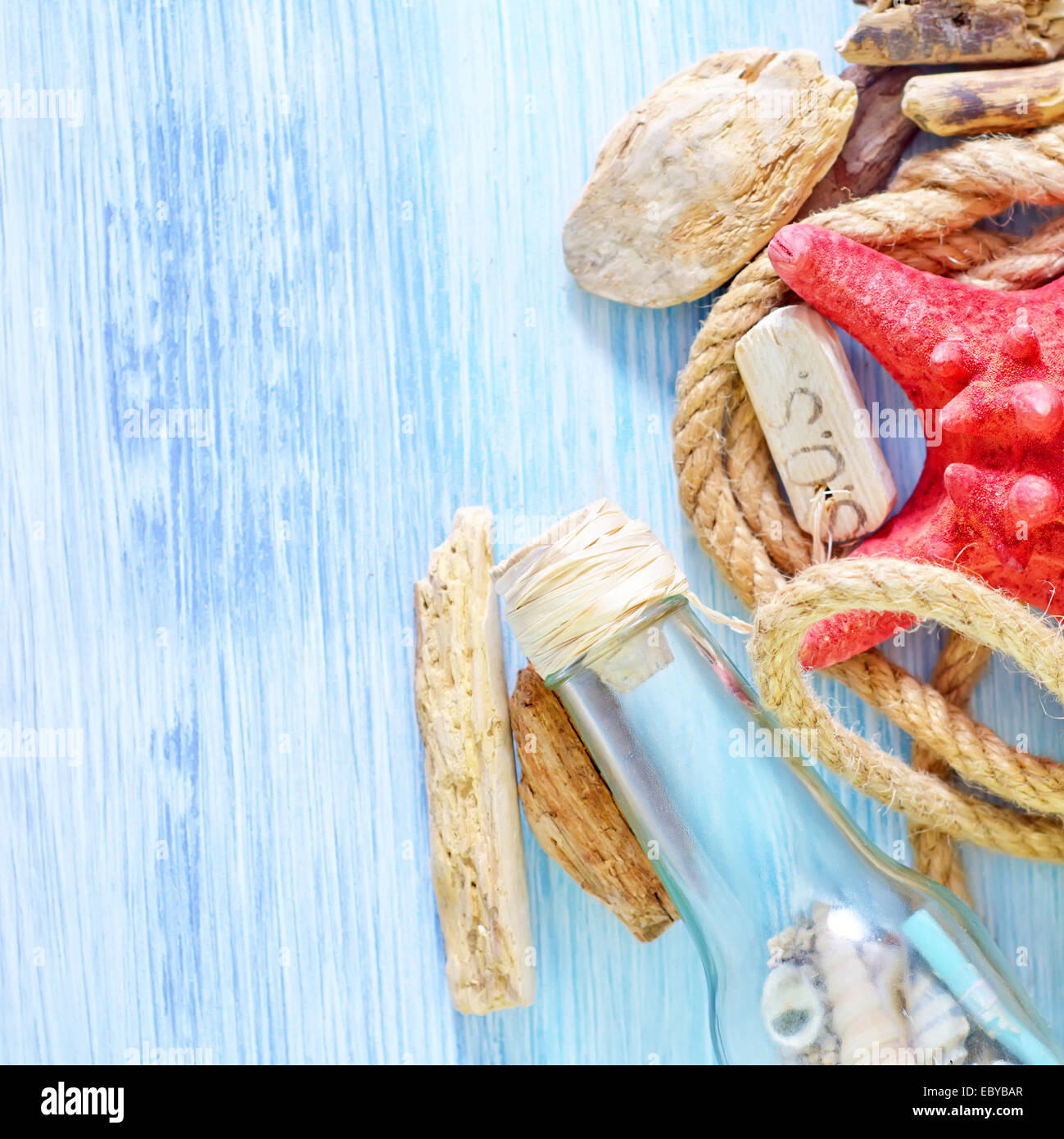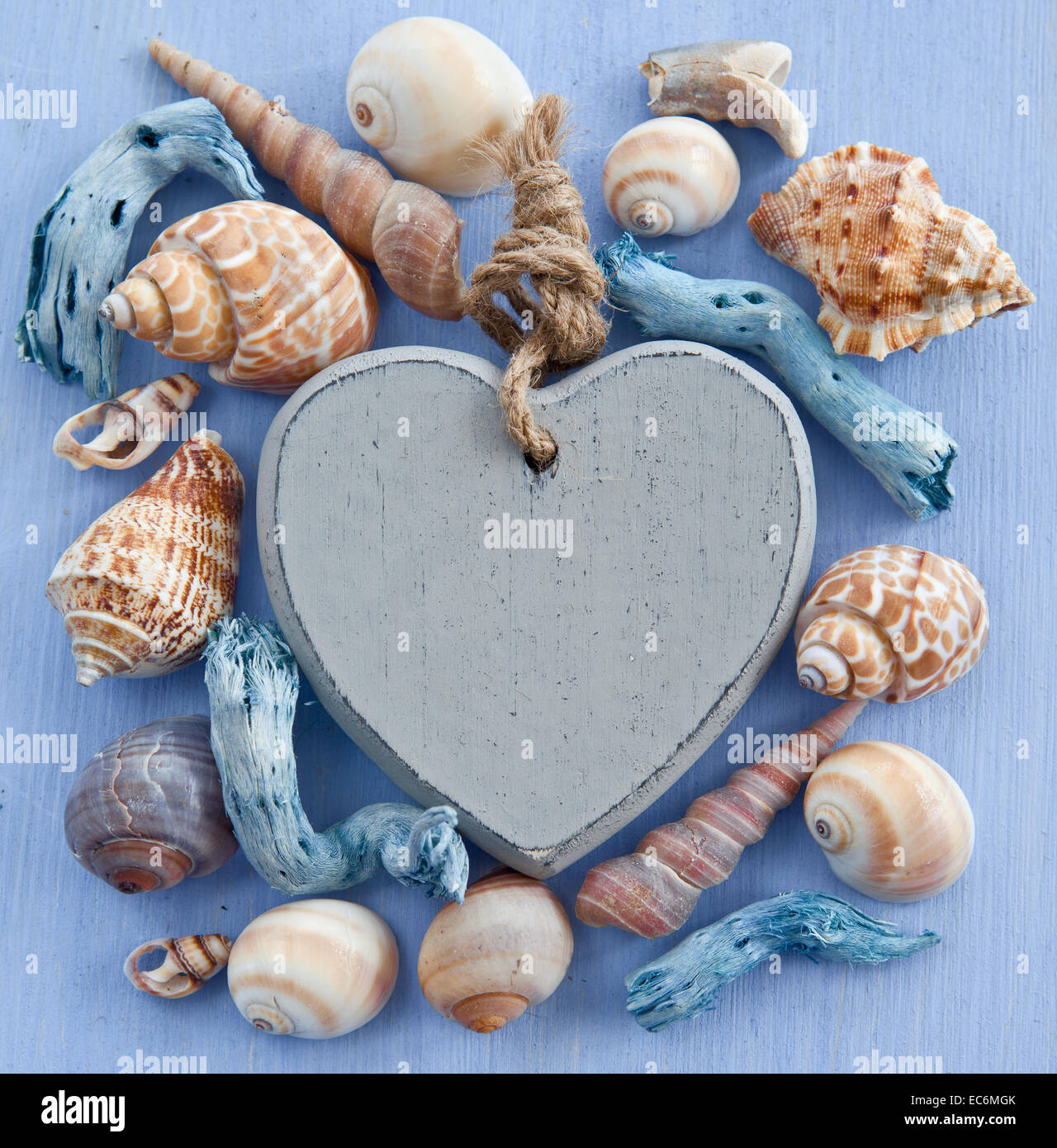 blue background shell on the sand at the seaside Stock Photo - Alamy