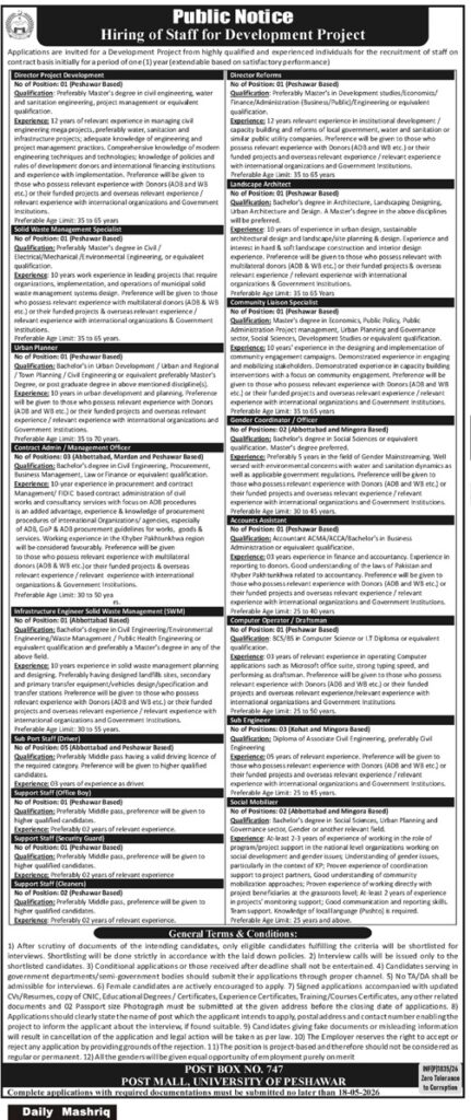 Development Project Jobs 2026 Peshawar - KP Govt Vacancies In Peshawar ...