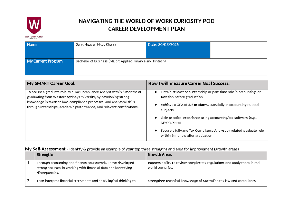 Career Development Plan: Tax Compliance Analyst Goal - Dang Nguyen Ngoc ...